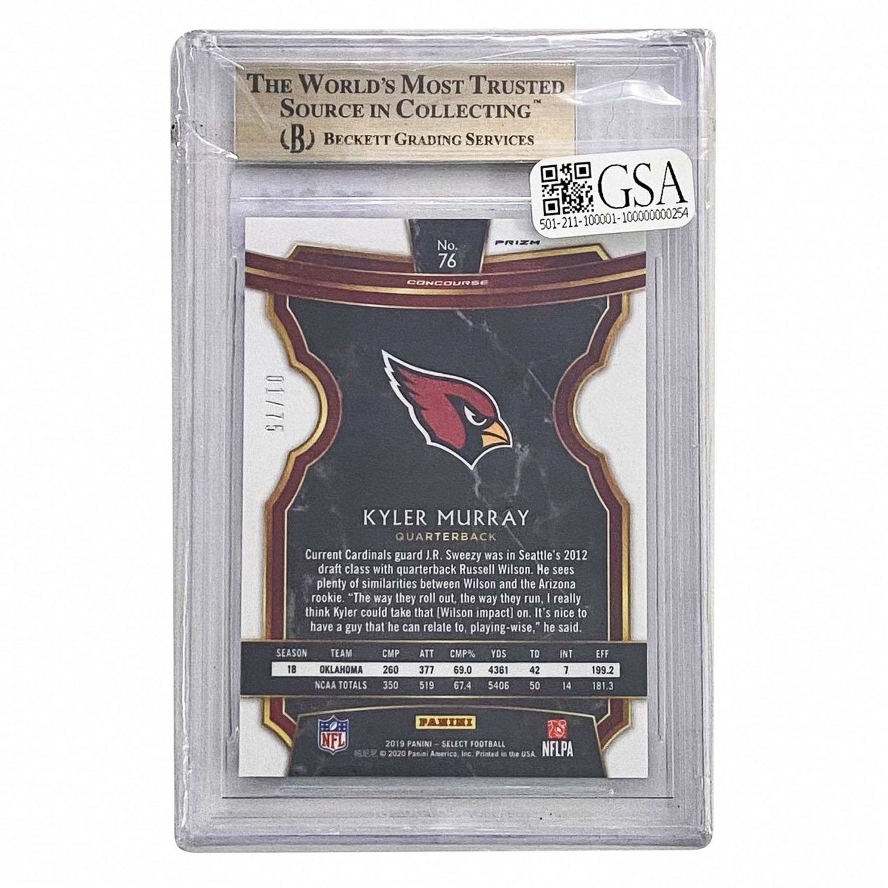 2019 Select Kyler Murray #76 Beckett GEM MT 9.5