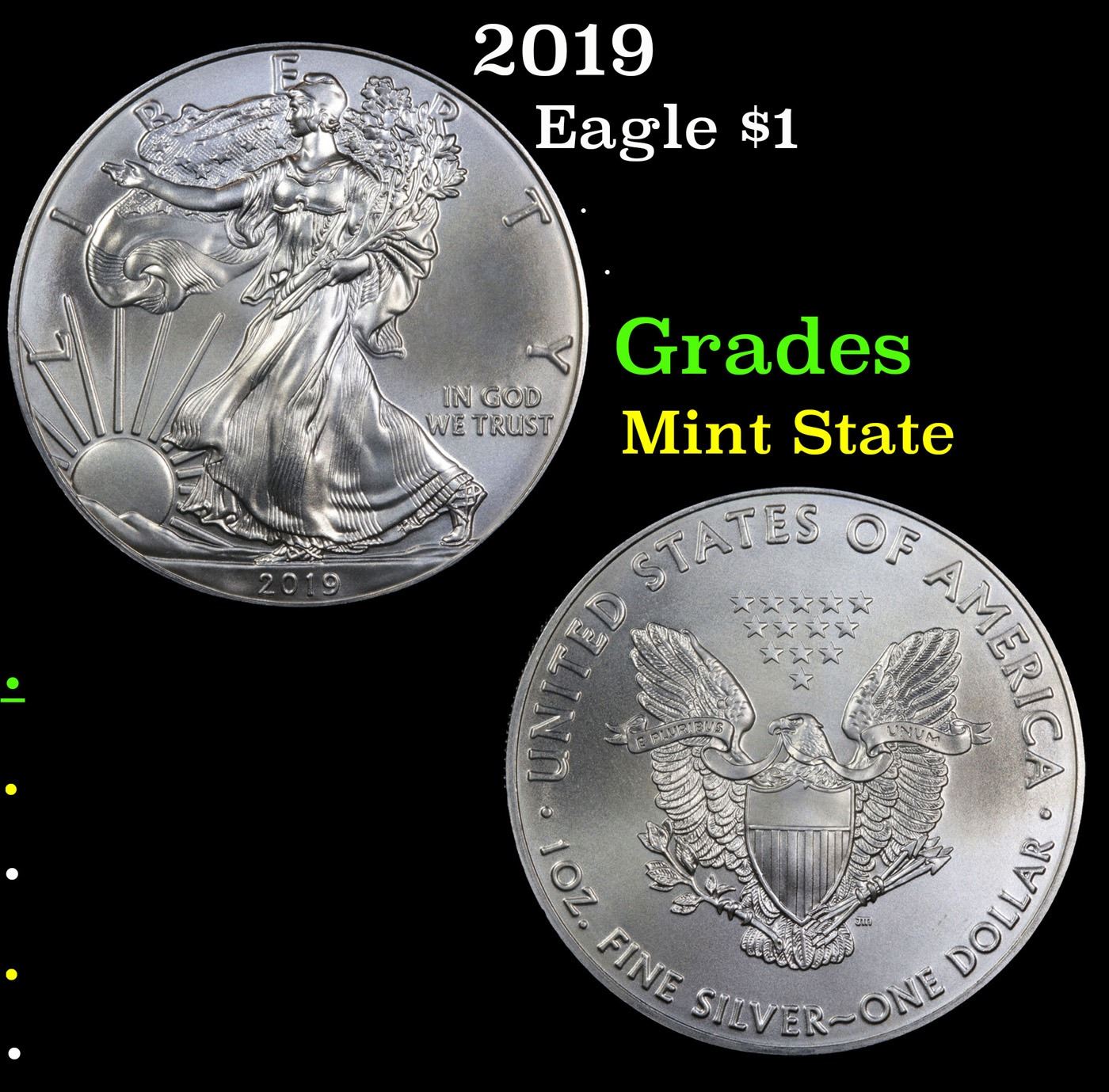 2019 Silver Eagle Dollar $1 Grades Mint State.