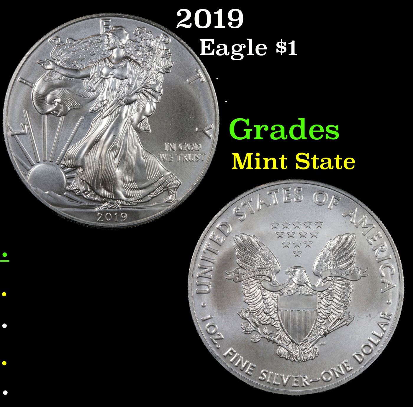 2019 Silver Eagle Dollar $1 Grades Mint State.