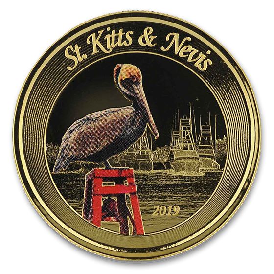 One piece 2019 St. Kitts and Nevis 1 oz Gold Pelican (Colorized)