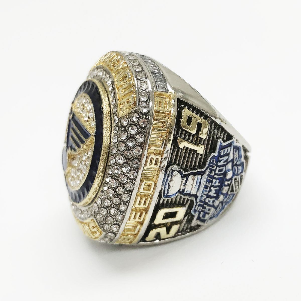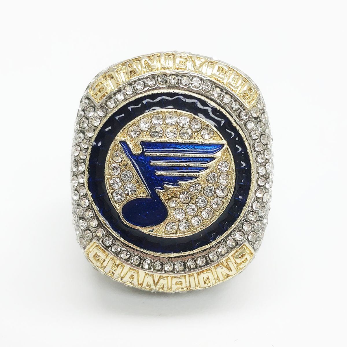 The 2019 St. Louis Blues NHL Stanley Cup Ring - (Reilly). Decorated With Inset Stones On Gold Gilt Base, This Championship Ring Commemorates The St. Louis Blues NHL Stanley Cup Run. The Western Conference champion St. Louis Blues defeated the Eastern Conference champion Boston Bruins four games to three to win their first championship, in their 51st season of play (not including the 2004–05 lockout), ending the third longest championship Drought in league history. This Highly Collectible Ring Demonstrates Championship Craftsmanship & Signifies What It Takes To Be A Champion In The NHL. View Photos For Further Details