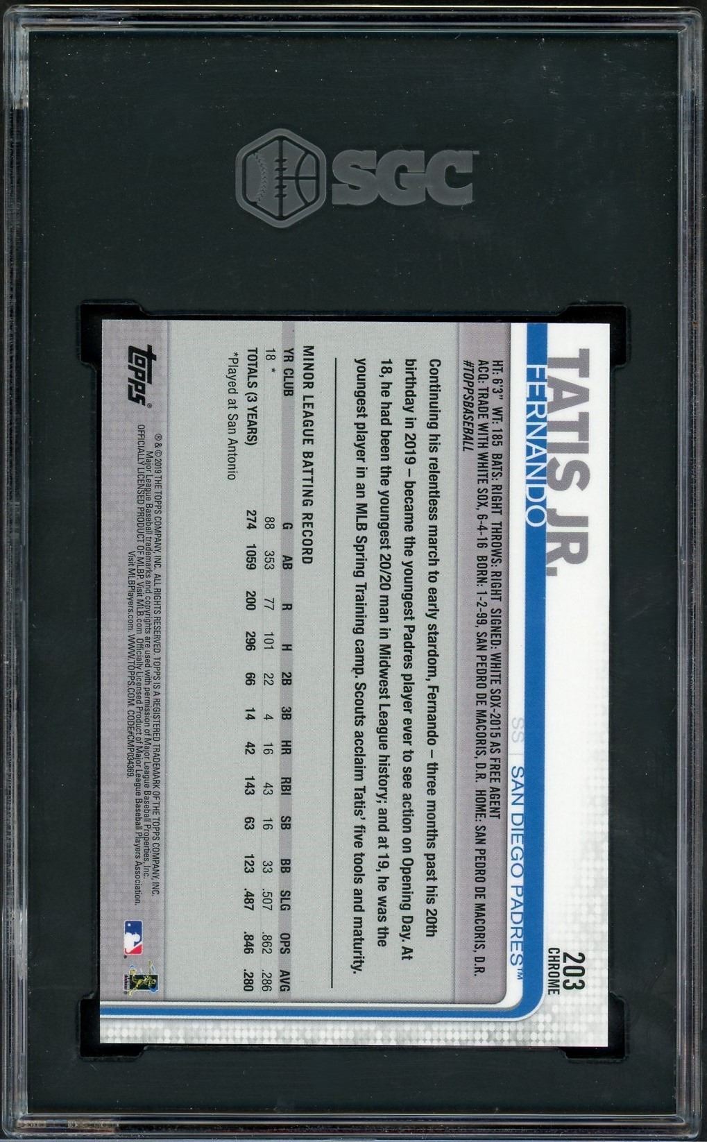 2019 Topps chrome rookie card of all star San Diego Padre Fernando Tatis Jr. Graded a Gem Mint 10 by SGC!