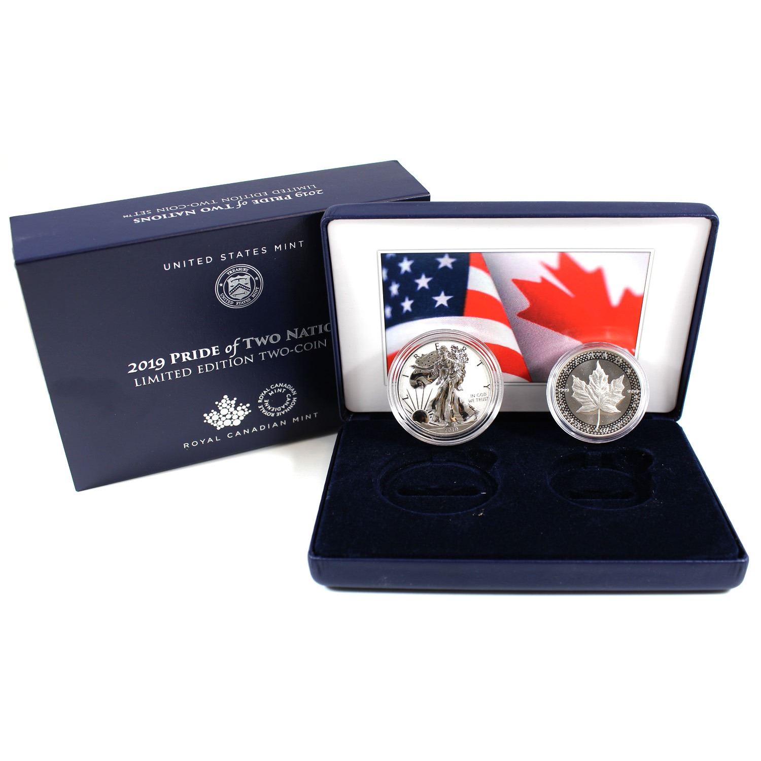 2019 USA & Canada Pride of Two Nations - Limited Edition Fine Silver Two-Coin Set (Tax Exempt) Please note one capsule contains minor cracking.