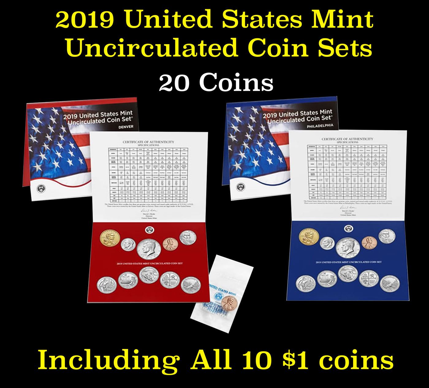 2019 United States Mint Uncirculated Coin Set 20 coins. 2019 Marks the 110th anniversary of the Lincoln Penny. First issued to mark the centennial anniversary of President Abraham Lincoln’s birth it was an instant success. The Lincoln Penny is now the longest-running design in United States Mint history! To pay tribute to the popular little coin, the United States Mint is releasing its 2019 Mint Set Sets with an additional “bonus” coin: the first-ever Lincoln Cent struck at the West Point Mint! The coin will be packaged separately and comes in its original government packaging.The 2019 U.S. Mint Uncirculated Coin Set consists of two folders of 10 coins each – one from the U.S. Mint at Philadelphia and the other from the U.S. Mint at Denver. Each folder contains the U.S. Mint’s 2019-dated coins, including the Native American $1 Coin featuring a new one-year-only reverse design that pays tribute to American Indians in the Space Program, and all five coins from this year’s America the Beautiful Quarters program.Besides the unique dollars and quarters, the sets include the Kennedy Half Dollar, Roosevelt Dime, Jefferson Nickel, and Lincoln Penny. The coins in these sets are uncirculated pieces pulled from regular production runs, thus the quality of the individual coins varies widely from set to set and even within a set. Both sets come in original packaging consisting of two blister-style folders. The blue folder contains coins from the Philadelphia Mint, the red folder contains coins from the Denver Mint.