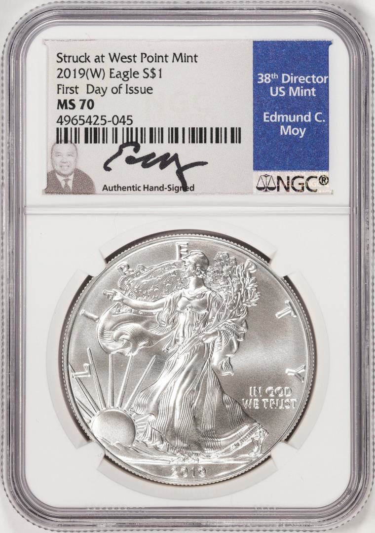One 2019(W) $1 American Silver Eagle Coin NGC MS70 FDOI Moy Signature West Point Mint. NGC Certified.