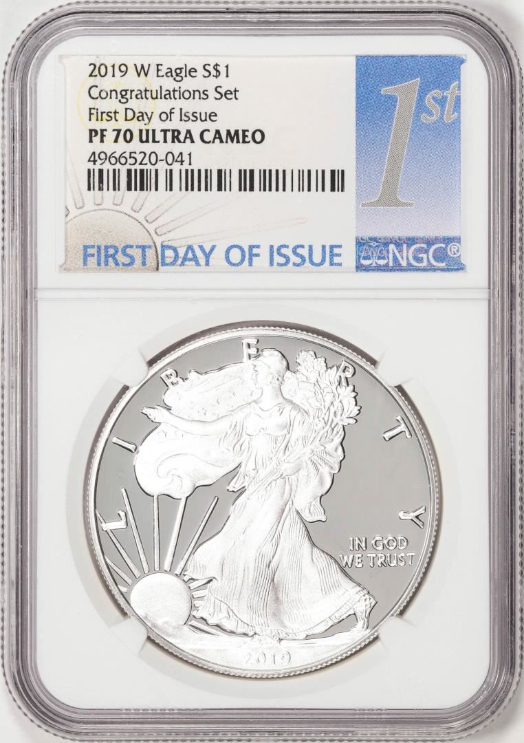 2019-W $1 American Silver Eagle Coin NGC PF70 Ultra Cameo FDOI Congratulations Set