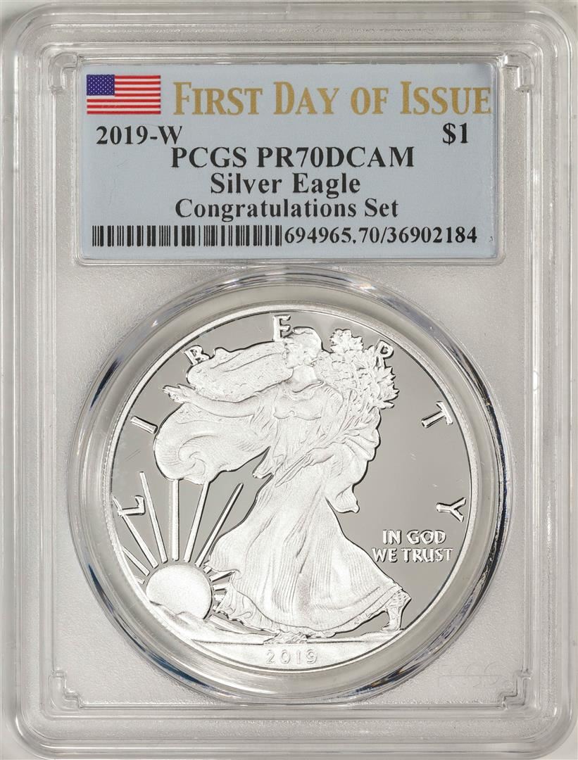 2019-W $1 Proof American Silver Eagle Coin Congratulations Set PCGS PR70DCAM FDOI