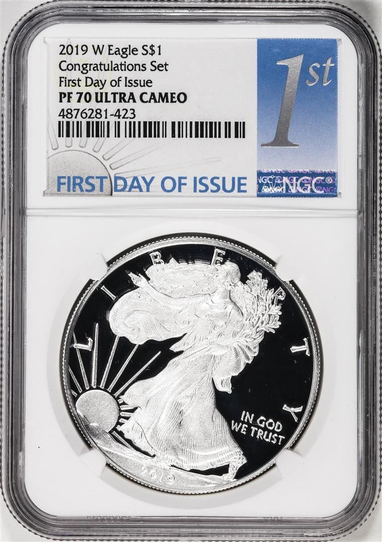 2019-W $1 Proof American Silver Eagle Coin NGC PF70 Ultra Cameo Congratulations FDOI