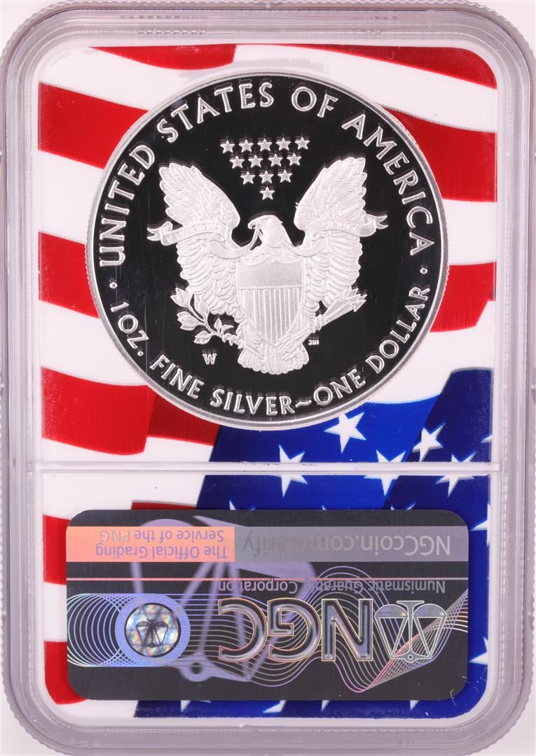 One 2019-W $1 Proof American Silver Eagle Coin NGC PF70 Ultra Cameo Congratulations Flag. NGC Certified.