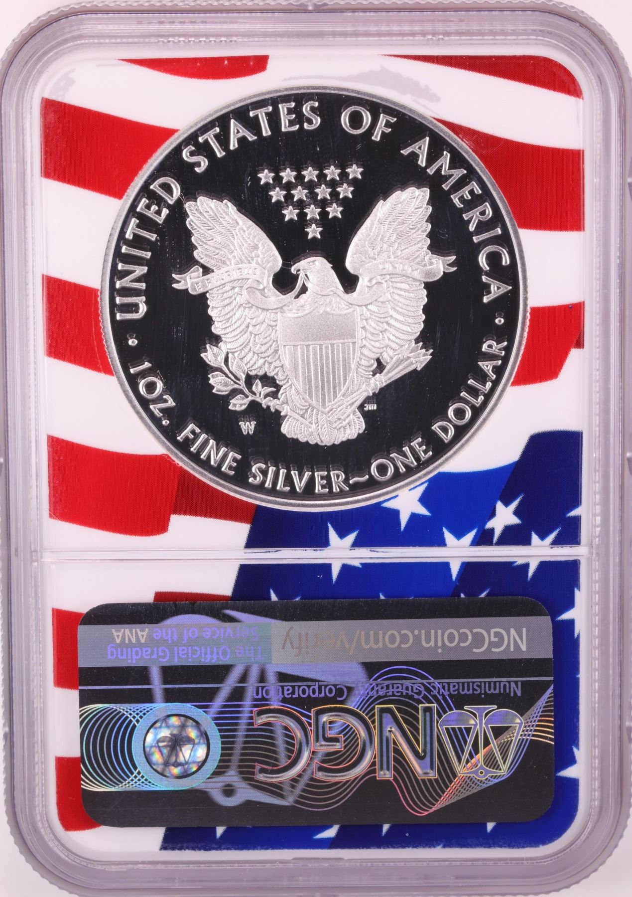 One 2019-W $1 Proof American Silver Eagle Coin NGC PF70 Ultra Cameo Congratulations Flag.