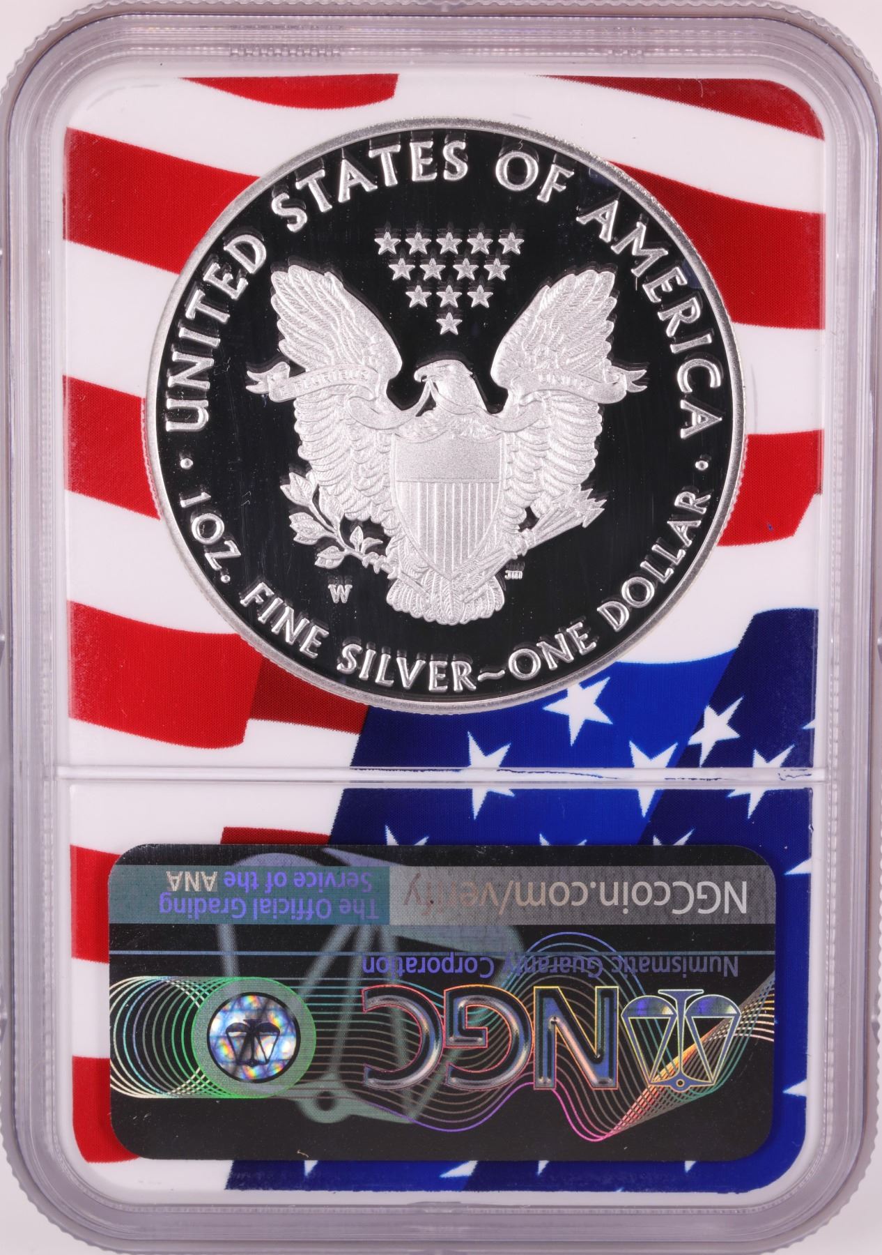 One 2019-W $1 Proof American Silver Eagle Coin NGC PF70 Ultra Cameo Congratulations Flag.