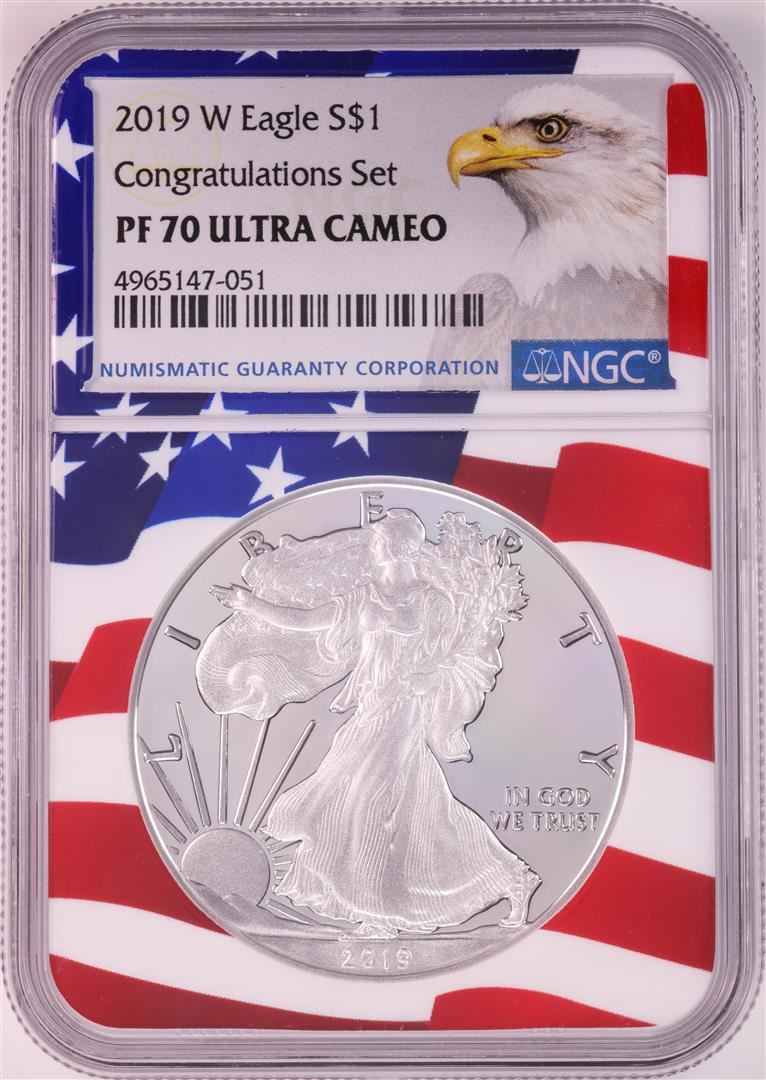 2019-W $1 Proof American Silver Eagle Coin NGC PF70 Ultra Cameo Congratulations Flag