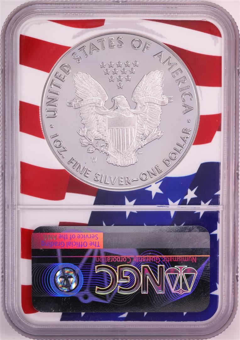 One 2019-W $1 Proof American Silver Eagle Coin NGC PF70 Ultra Cameo Congratulations Flag. NGC Certified.
