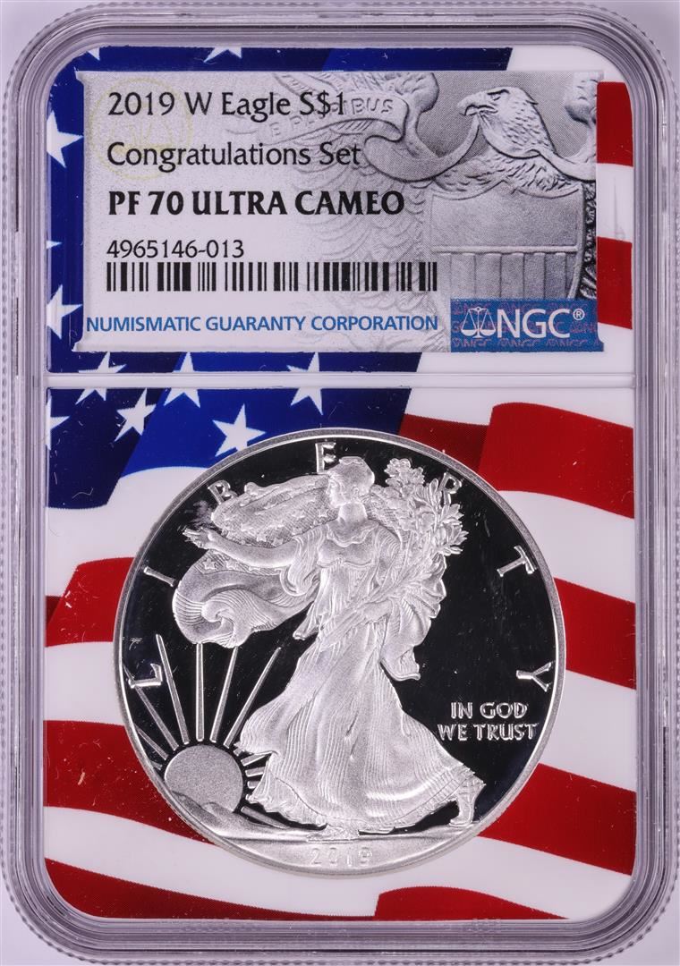 2019-W $1 Proof American Silver Eagle Coin NGC PF70 Ultra Cameo Congratulations Flag