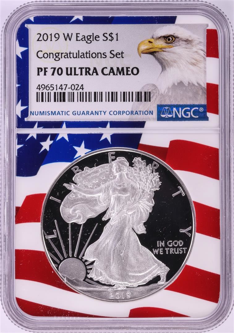 2019-W $1 Proof American Silver Eagle Coin NGC PF70 Ultra Cameo Congratulations Flag