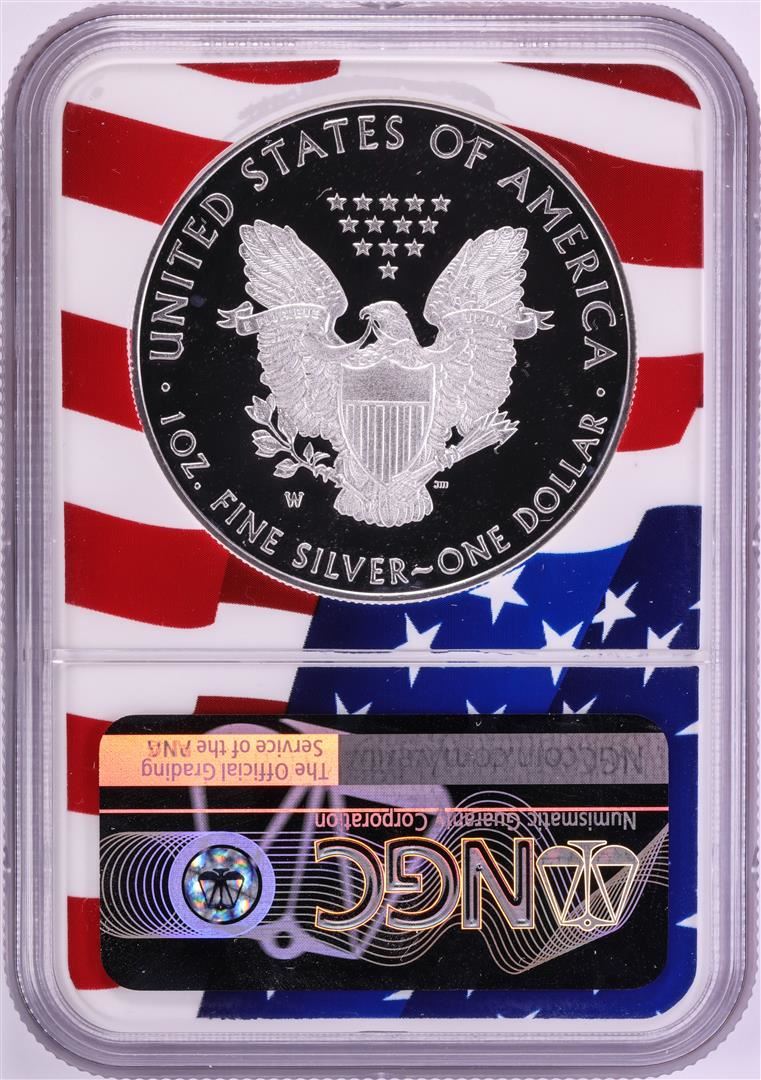 One 2019-W $1 Proof American Silver Eagle Coin NGC PF70 Ultra Cameo Congratulations Flag. NGC Certified.
