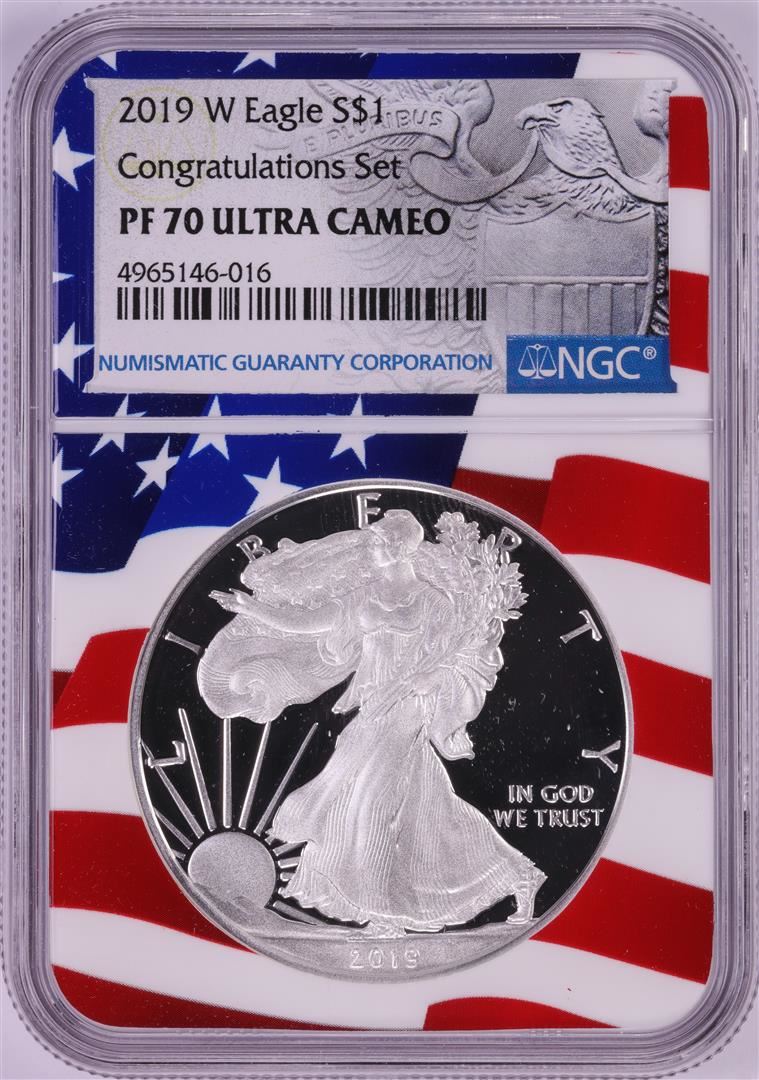 2019-W $1 Proof American Silver Eagle Coin NGC PF70 Ultra Cameo Congratulations Flag