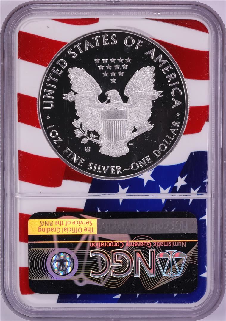 One 2019-W $1 Proof American Silver Eagle Coin NGC PF70 Ultra Cameo Congratulations Flag. NGC Certified.