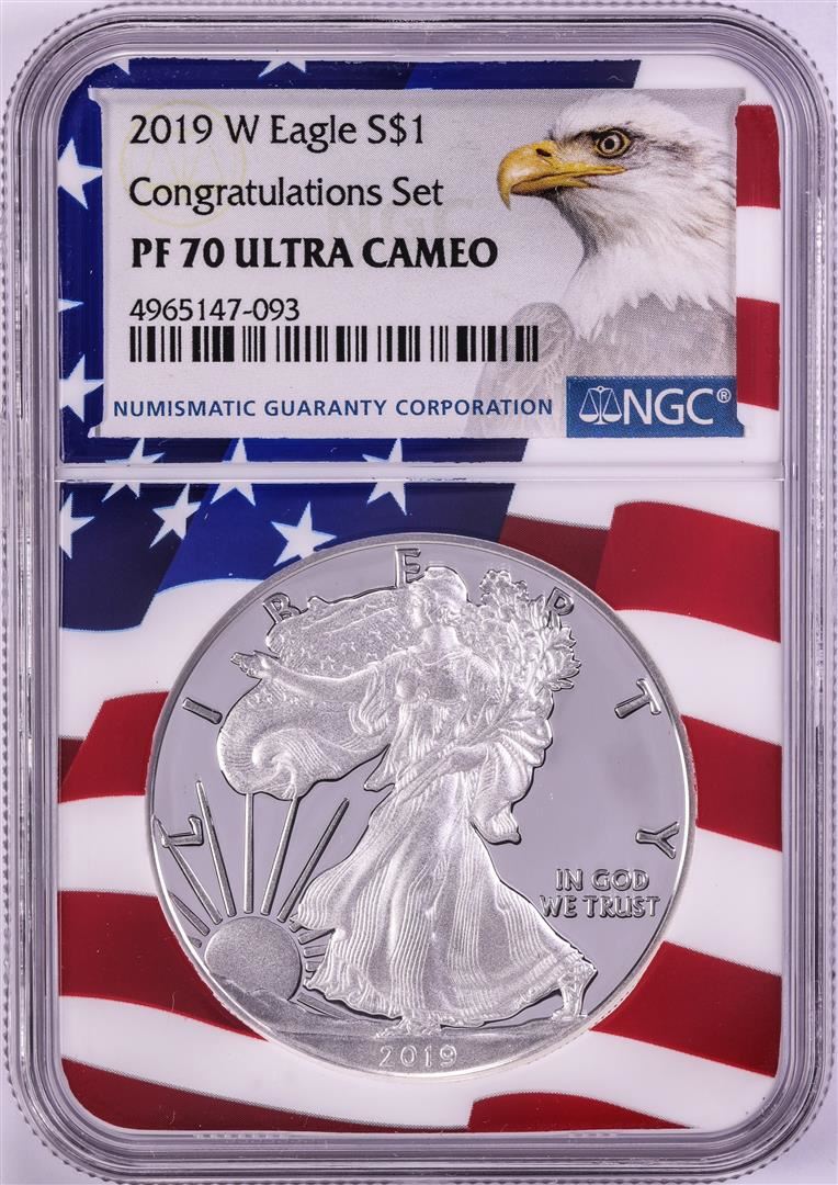 2019-W $1 Proof American Silver Eagle Coin NGC PF70 Ultra Cameo Congratulations Flag