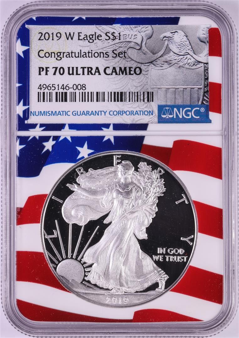 2019-W $1 Proof American Silver Eagle Coin NGC PF70 Ultra Cameo Congratulations Flag