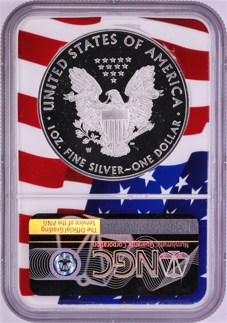 One 2019-W $1 Proof American Silver Eagle Coin NGC PF70 Ultra Cameo Congratulations Flag. NGC Certified.
