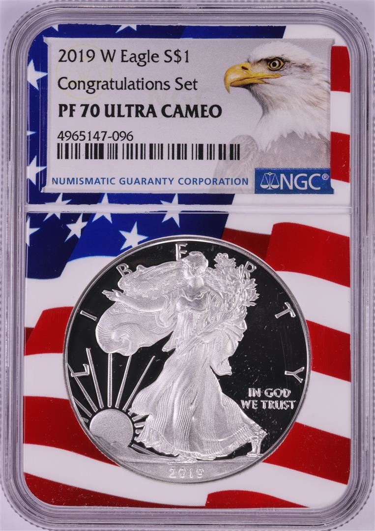 2019-W $1 Proof American Silver Eagle Coin NGC PF70 Ultra Cameo Congratulations Flag