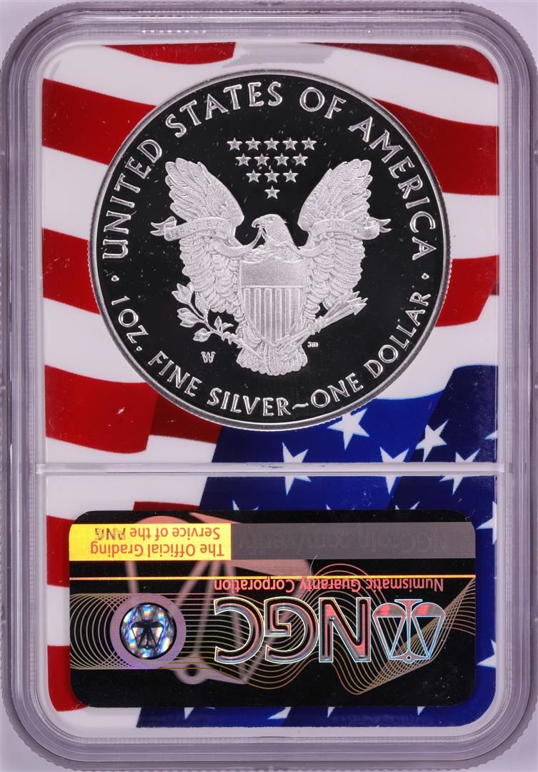 One 2019-W $1 Proof American Silver Eagle Coin NGC PF70 Ultra Cameo Congratulations Flag. NGC Certified.