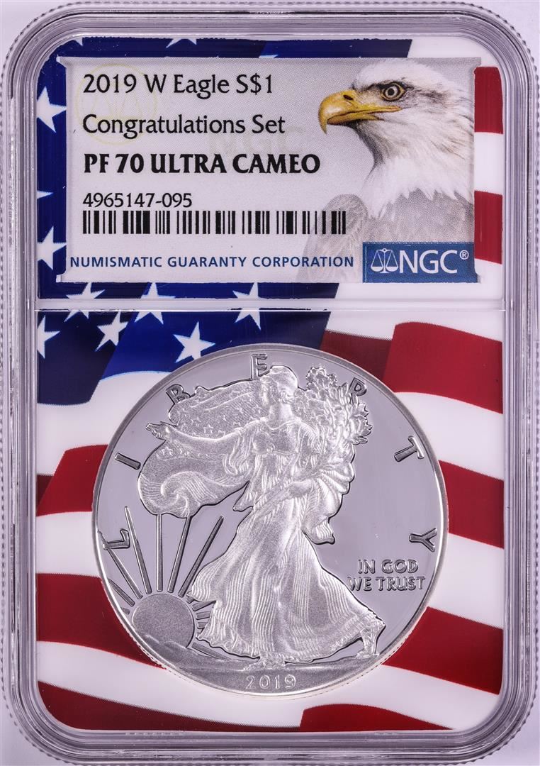 2019-W $1 Proof American Silver Eagle Coin NGC PF70 Ultra Cameo Congratulations Flag