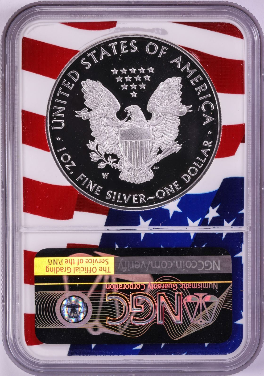 One 2019-W $1 Proof American Silver Eagle Coin NGC PF70 Ultra Cameo Congratulations Flag.