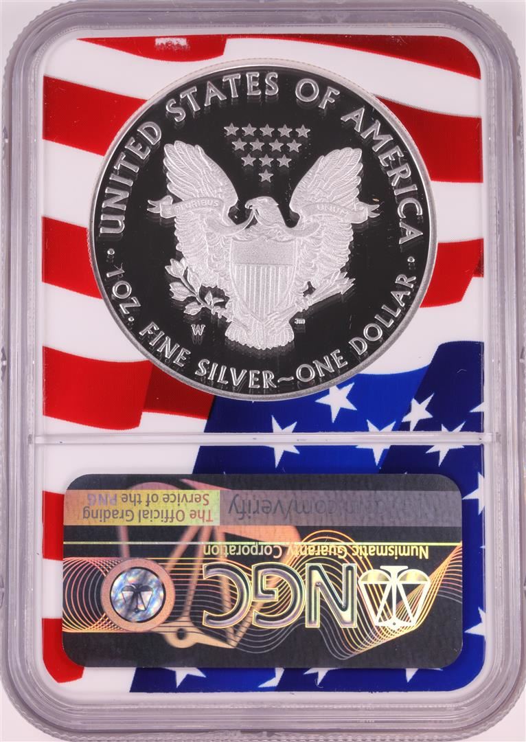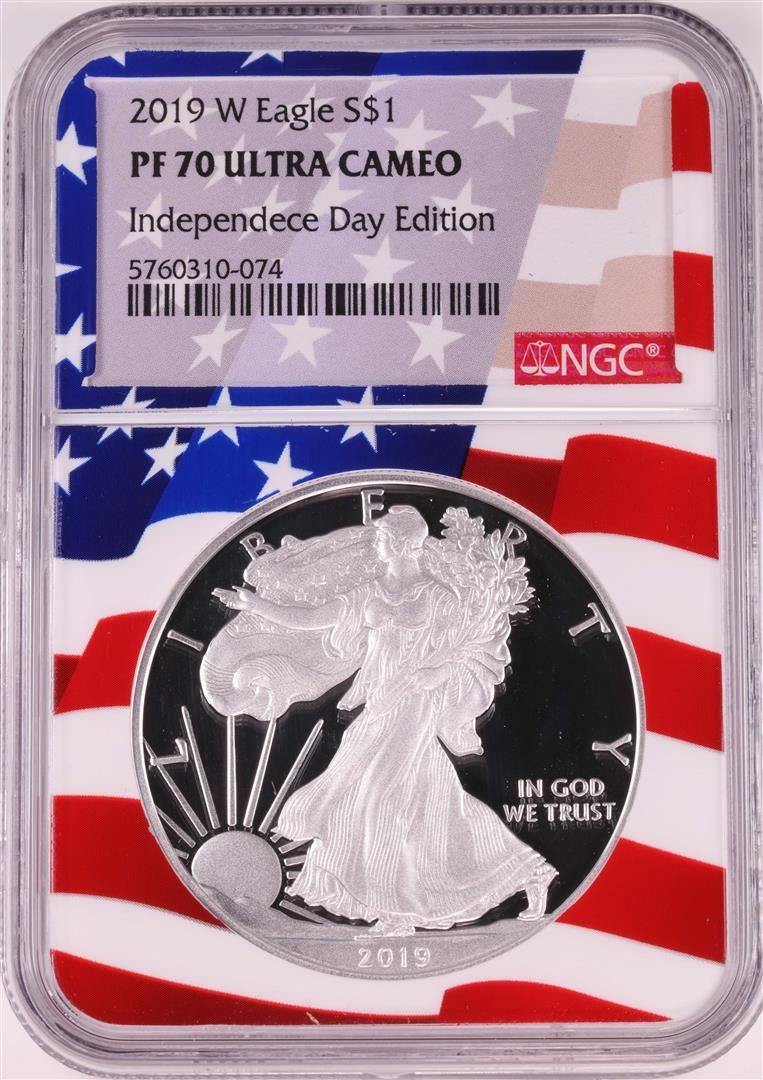 2019-W $1 Proof American Silver Eagle Coin NGC PF70 Ultra Cameo Independence Day Flag