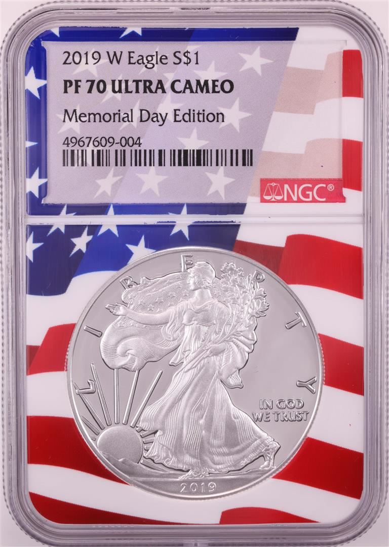 2019-W $1 Proof American Silver Eagle Coin NGC PF70 Ultra Cameo Memorial Day Flag Core