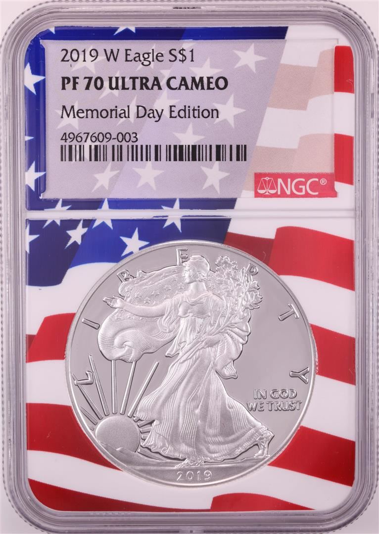 2019-W $1 Proof American Silver Eagle Coin NGC PF70 Ultra Cameo Memorial Day Flag Core