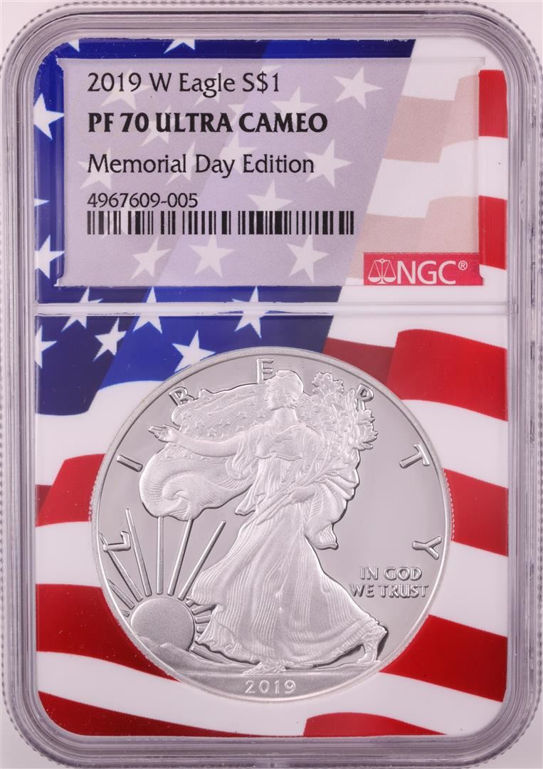 2019-W $1 Proof American Silver Eagle Coin NGC PF70 Ultra Cameo Memorial Day Flag Core