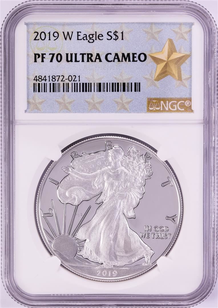One 2019-W $1 Proof American Silver Eagle Coin NGC PF70 Ultra Cameo. NGC Certified.