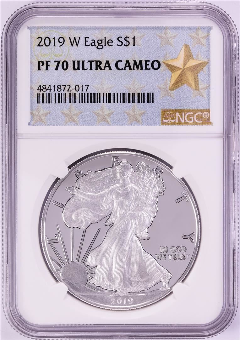 One 2019-W $1 Proof American Silver Eagle Coin NGC PF70 Ultra Cameo. NGC Certified.