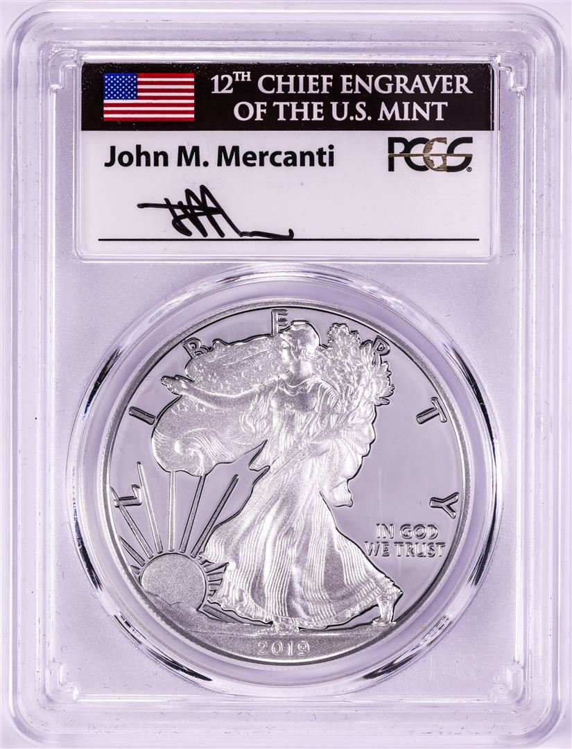 2019-W $1 Proof American Silver Eagle Coin PCGS PR70DCAM First Strike Mercanti Signed