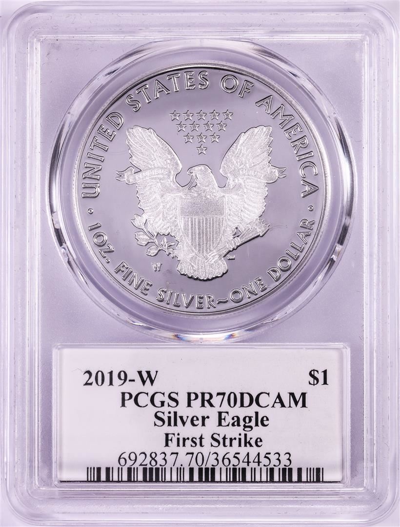 One 2019-W $1 Proof American Silver Eagle Coin PCGS PR70DCAM First Strike Mercanti Signed. PCGS Graded.