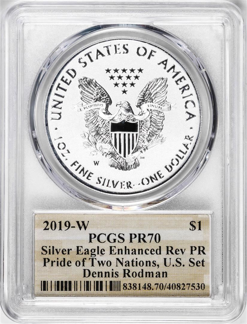 2019-W $1 Reverse Proof Silver Eagle Coin PCGS PR70 HOF Dennis Rodman Signature