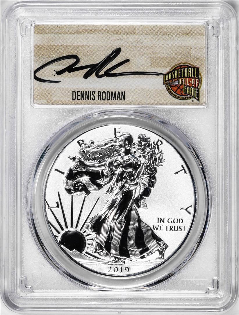 2019-W $1 Reverse Proof Silver Eagle Coin PCGS PR70 HOF Dennis Rodman Signature