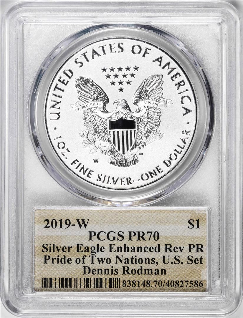 2019-W $1 Reverse Proof Silver Eagle Coin PCGS PR70 HOF Dennis Rodman Signature