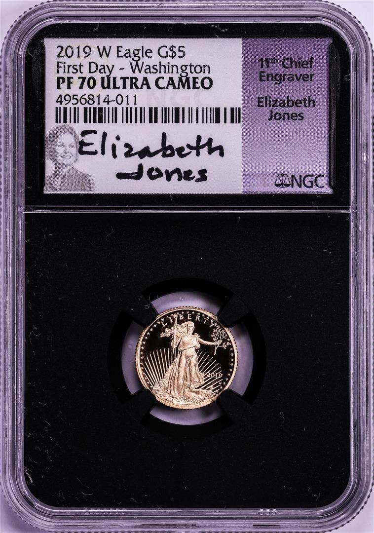 2019-W $5 Proof American Gold Eagle Coin NGC PF70 Ultra Cameo First Day Jones Signed