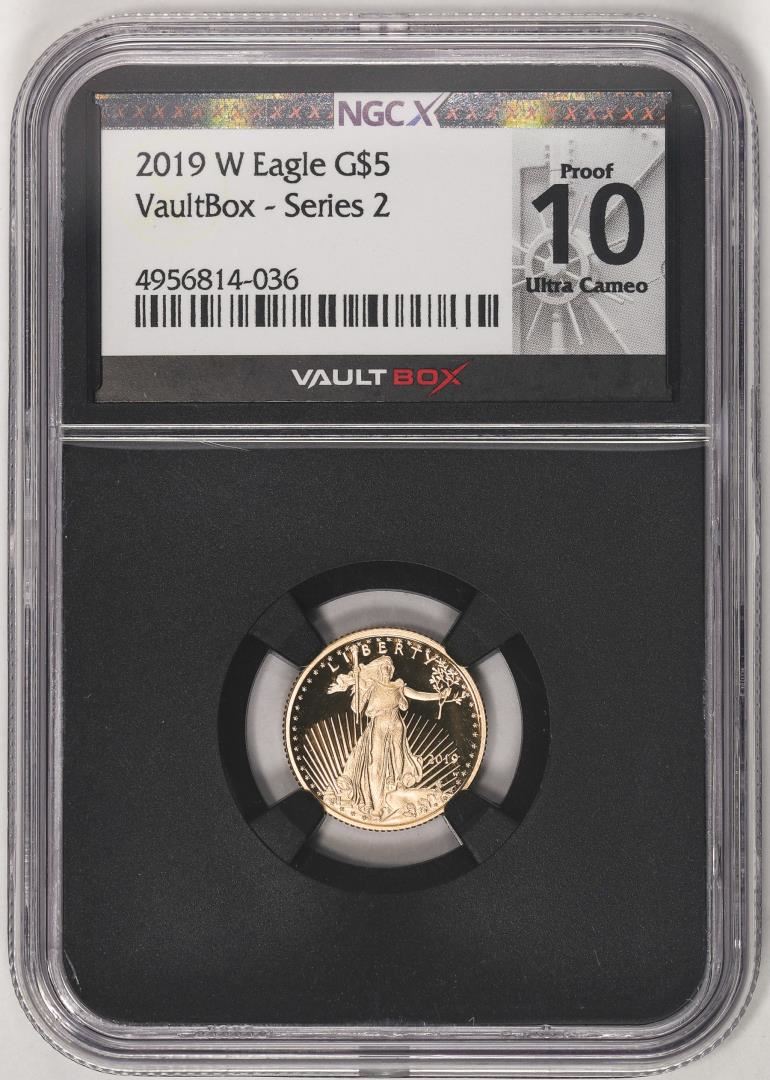 2019-W $5 Proof American Gold Eagle Coin NGCX Proof 10 Ultra Cameo Vaultbox Series 2