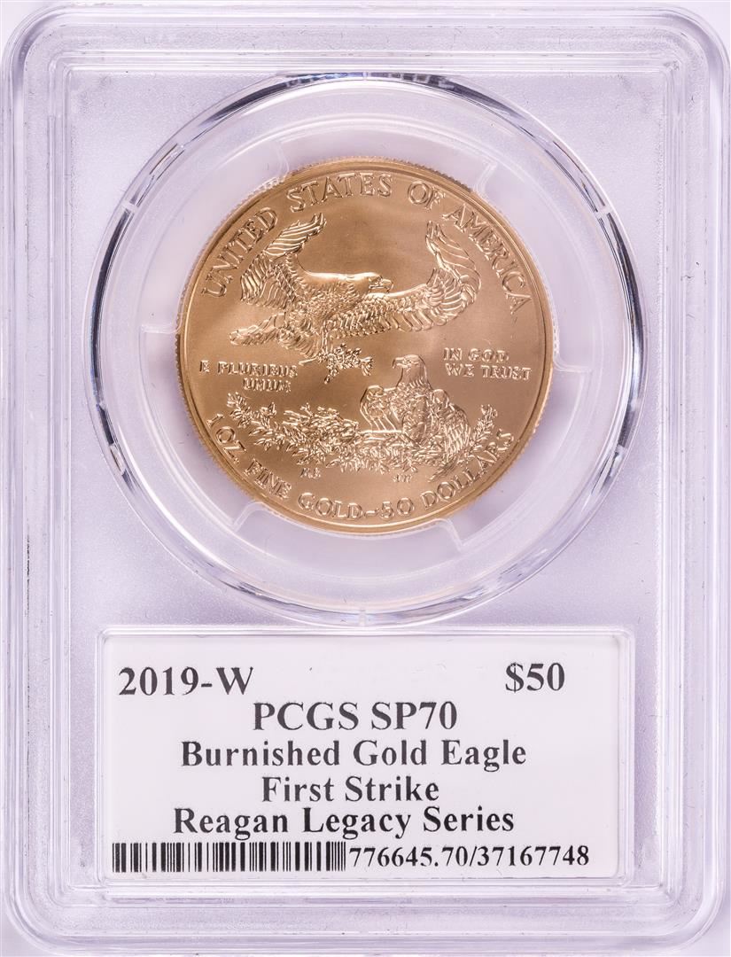 One 2019-W $50 Burnished American Gold Eagle PCGS SP70 First Strike M. Reagan Signature. PCGS Graded.