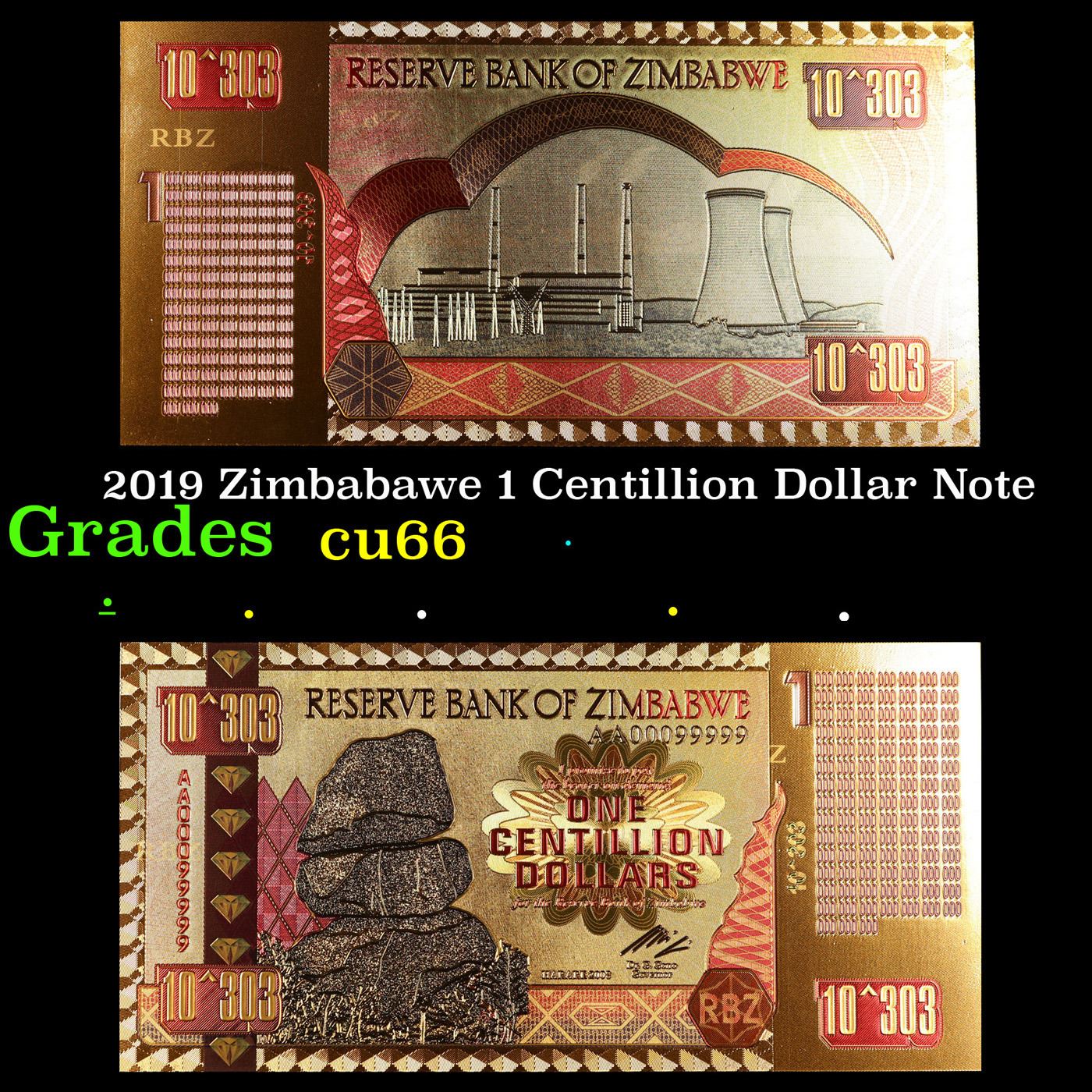 2019 Zimbabawe 1 Centillion Dollar Note Grades Gem+ CU.