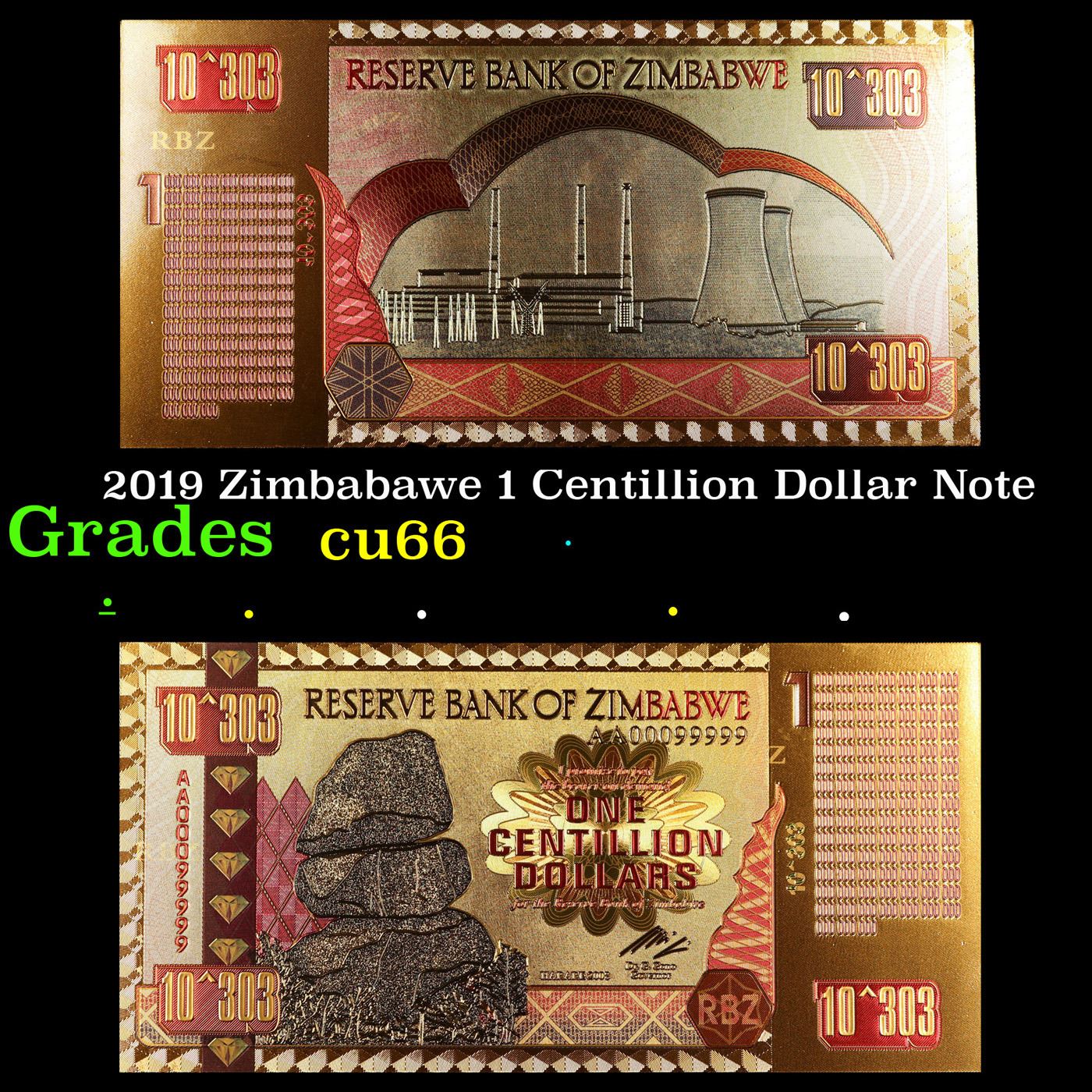 2019 Zimbabawe 1 Centillion Dollar Note Grades Gem+ CU.