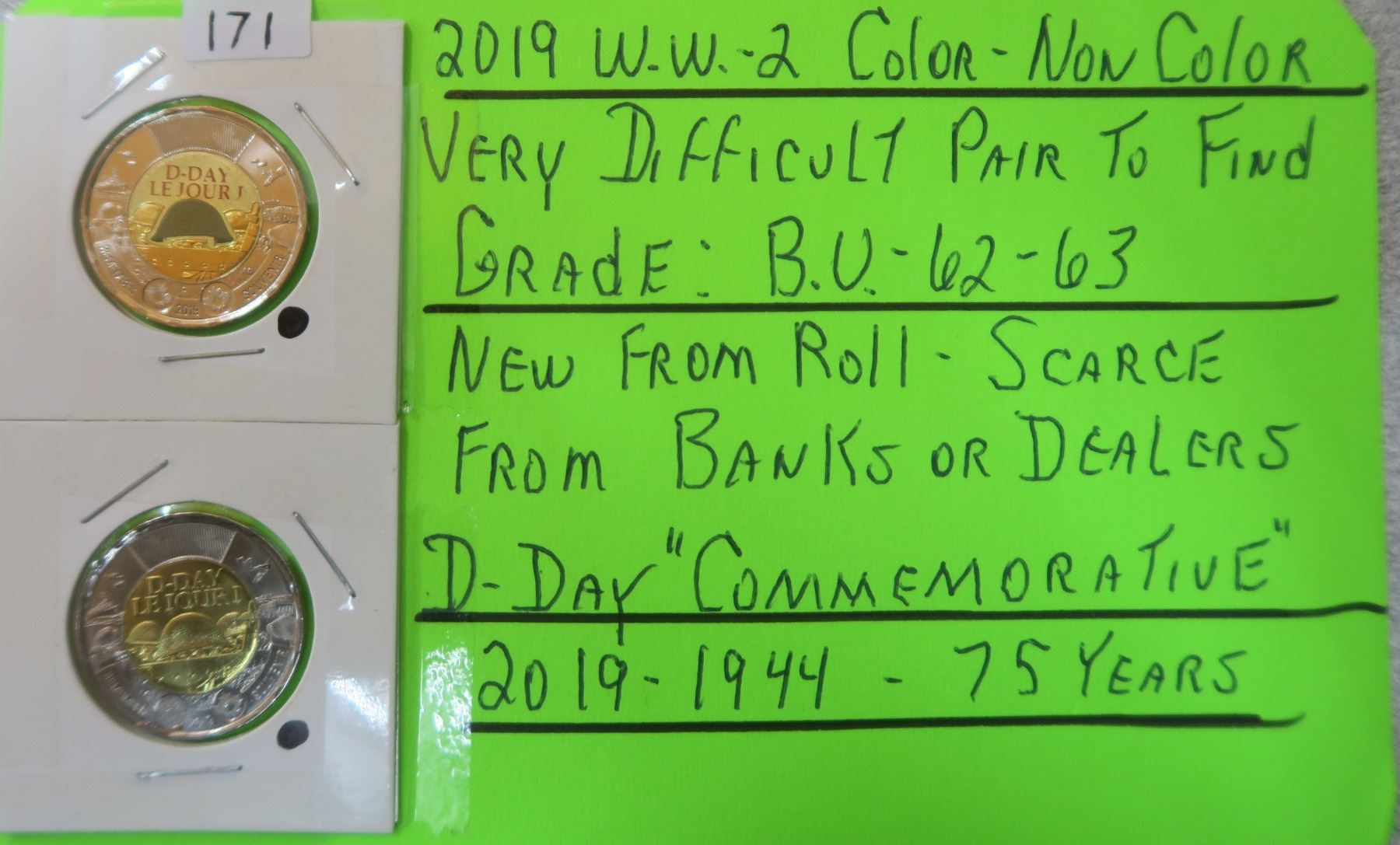 2019 w.w.2 color/noncolor coin and 2019 d-day commemorative coin (difficult pair to find)