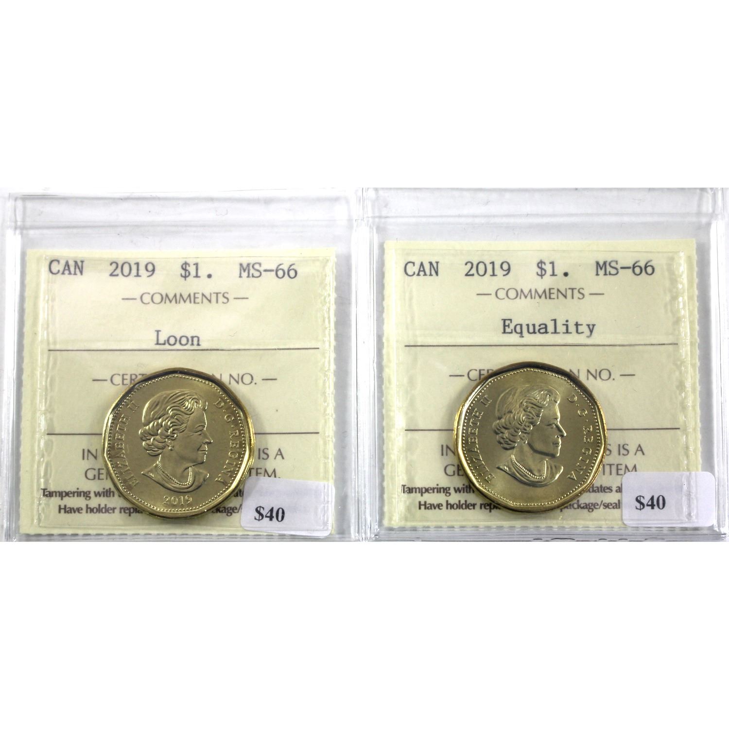 20190 Equality & 2019 Reg Loon Dollar ICCS Certified MS-66. 2pcs