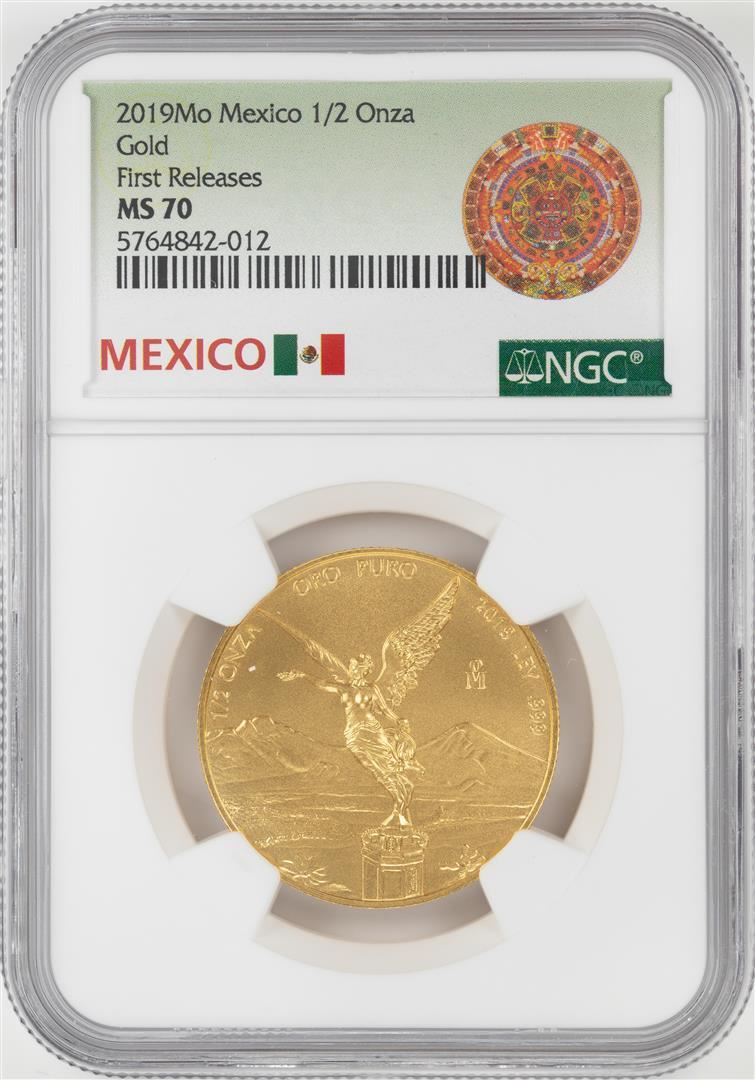 One 2019Mo Mexico 1/2 Onza Gold Coin NGC MS70 Early Releases. NGC Certified.