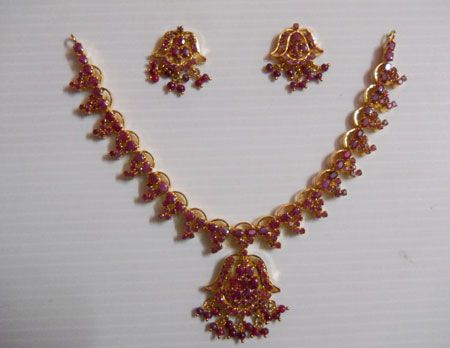 202.30 CTW GOLD PLATED RUBY NECKLACE AND EARRING SET ST **|**|** 202.30 CTW GOLD PLATED RUBY NECKLACE AND EARRING SET STERLING SILVER ; MSRP: $2025