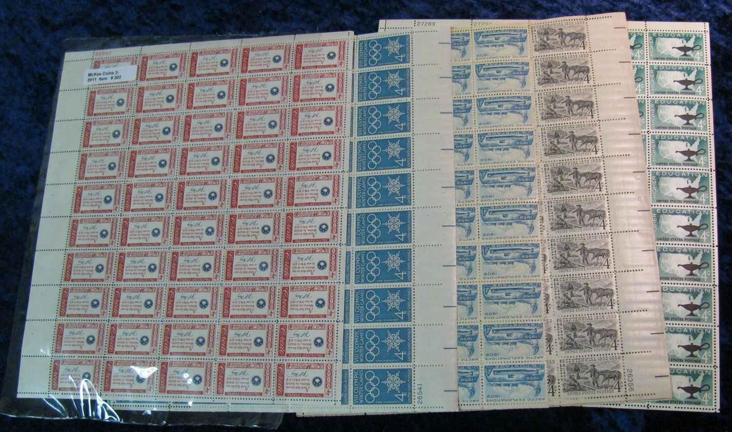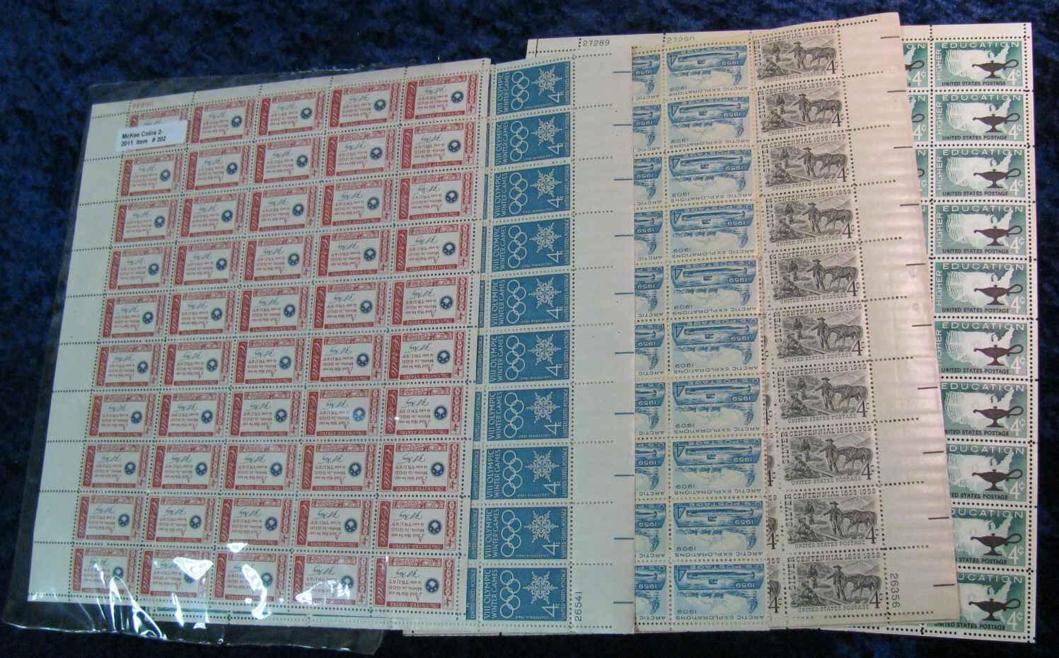 202. (5) Original Mint Sheets of U.S. 4c Stamps. All different. ($10 face value)